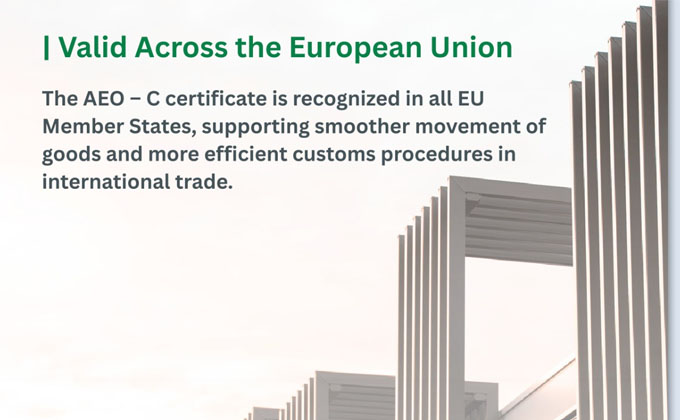 Alarm automatika has been granted AEO–C (Authorised Economic Operator) status by the Customs Administration of the Ministry of Finance, marking an important step forward in the organization of its operations and international trade at the beginning of 2026. The certificate confirms compliance with customs regulations, financial stability, and secure, well-structured supply chain processes. Obtaining AEO–C status represents official recognition of the company’s high operational standards in international logistics and trade activities.